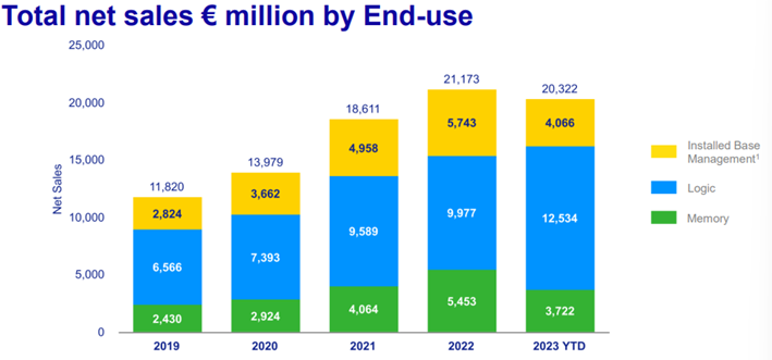 Furthermore, ASML’s sales can also be categorized by the nature of the products’ demand. Logic chips are in charge of processing information while memory chips of storing data. In the last quarter, machines intended to produce logic chips made up for 76% of the total.