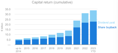 During the third quarter of 2023, ASML repurchased 100M worth of shares and paid 570M in dividends. I must say that, personally, management seems to be deploying capital adequately as to what their repurchasing program respects.